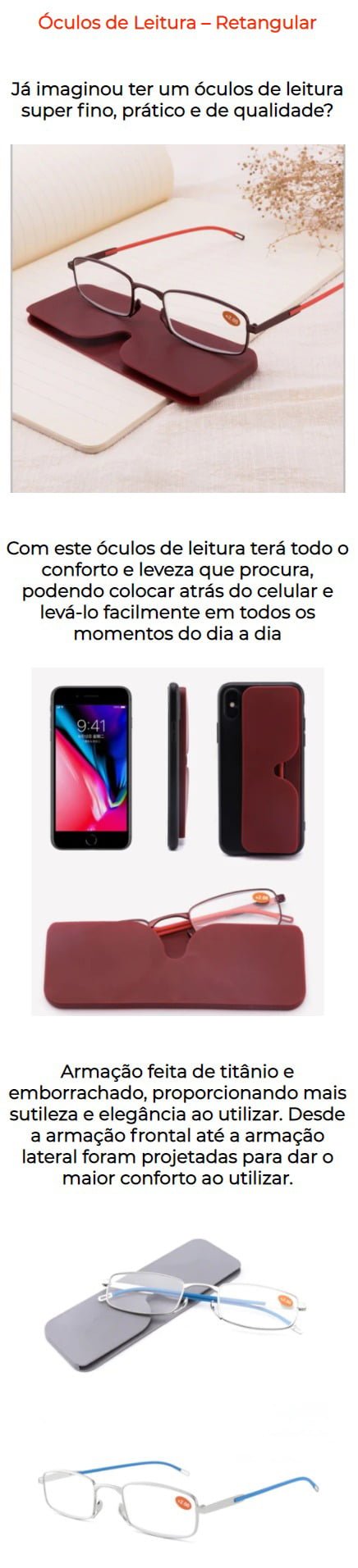 Adicionar uma avaliação “Óculos de Leitura Portátil Retangular Anti-Reflexo UV400 Proteção Luz Azul” Cancelar resposta